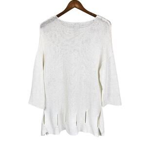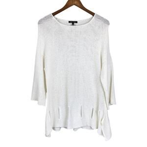John Mark Ivory White Open Knit Cut Out Hem A-line Tunic Sweater