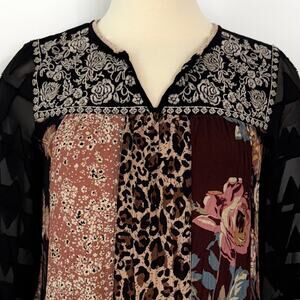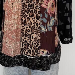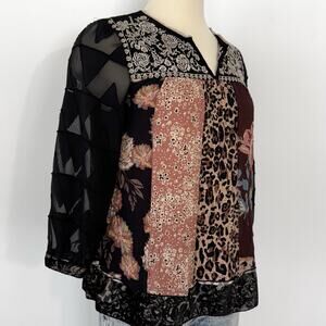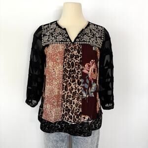 John Mark Jacquard-Velvet 3/4 Sleeves Top Tunic Floral Animal Print PS (XS-S)