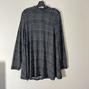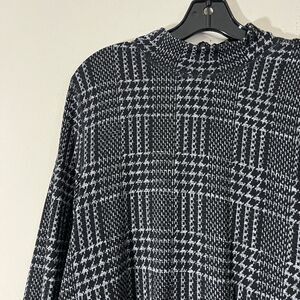 John Mark Knit Swing Tunic Size M Black Gray Houndstooth Plaid Mock Neck NEW