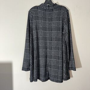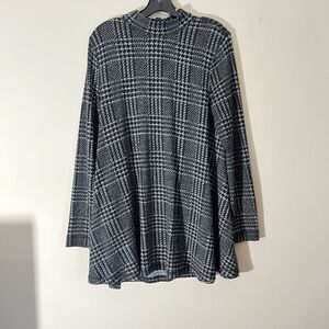 John Mark Knit Swing Tunic Size M Black Gray Houndstooth Plaid Mock Neck stretch NEW