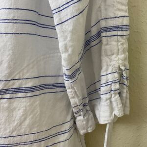 John Mark Linen Blouse Top Shacket Women's Size Med. Striped blue shirt