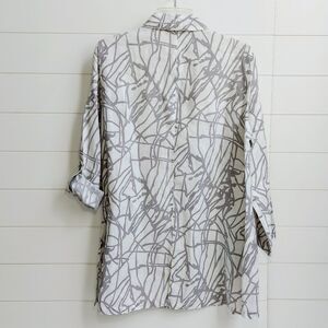 John Mark Linen Button Up Tunic Shirt Size Medium Roll Tab Sleeves Artsy Modern