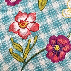 John Mark Linen Plaid Embroidered Button Up Top Sz Large Floral Artsy Boho $139