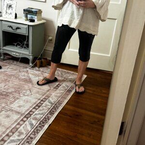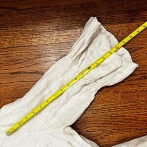 Cute John Mark Oatmeal top, 100% linen. It's only been worn a handful of times and is in great shape. The 3/4 length sleeves include a ruffle and scalloped sleeve bottom and shirt bottom. The neck has a v neck detail and the back has a pleat.