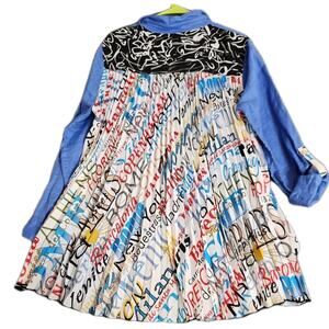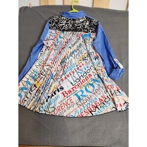 John Mark Mixed Print Button Up Collared Shirt Paris France Linen Pleated Size L
