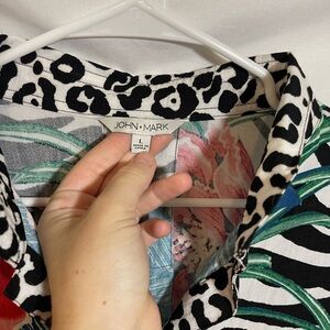 John Mark Multicolor Floral and Animal Print Button Down Shirt
