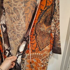 John Mark Multiprint Colorful Tie Front Kimono Cardigan Sz XL Boho Festival