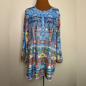 John Mark Novelty Print Small 3/4 Sleeves Boho Tunic Top Artsy Floral Size Med