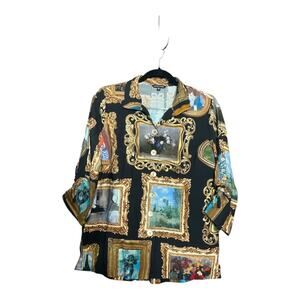 John Mark Printed Wire Collar Cinch Tie Sleeve Button Front Top XS NWOT
