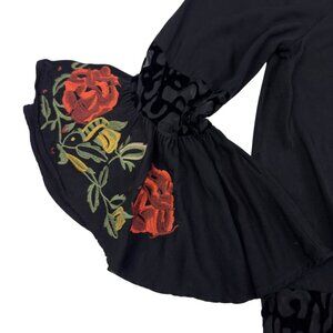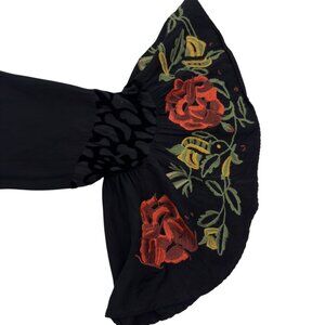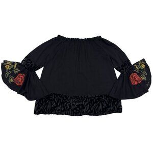 John Mark Rayon/Velvet Embroidered Boho Ruffle Sleeve Off The Shoulder Top SZ M