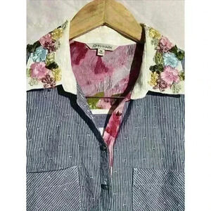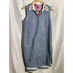 John Mark Shirt Dress Sleeveless Tunic Embroidered Floral Collar Trim Size Med