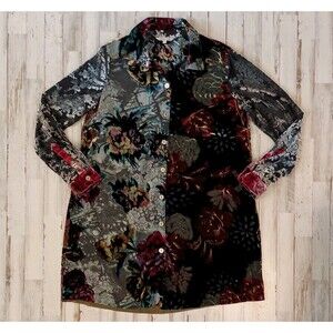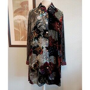 John Mark Size S Tunic Shirt Dress Button Front Long Floral Velvet Sheer Boho