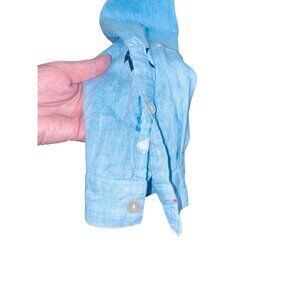 John Mark Sky Blue Embroidered Star Linen Patriotic USA Button Up Top Money