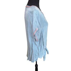 John Mark Soft Chambray Blue Button Boho Blouse Embroidered Front Tie M Cottage
