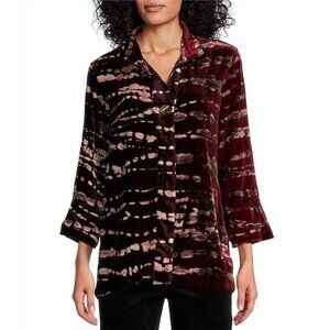 John Mark Tie Dye Wire Collar 3/4 Sleeve Velvet Blouse Tunic Size XS NWT
