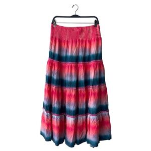 John Mark Tie-dyed Prairie Broomstick Skirt Smocked Waist Tiered Pull On L