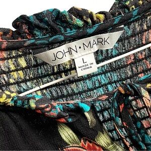 John Mark Top Sz L Mixed Print Animal Print Blouse Floral Tassel Shirring Artsy