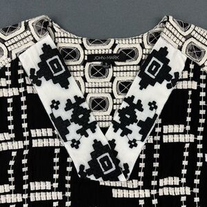 John Mark Top Women Small Black Anastasia Embroidered Aztec Geometric Blouse NEW