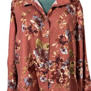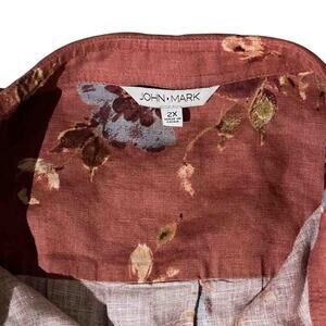 John Mark Tunic Style Rust Floral Button Front Shirt Size 2X
