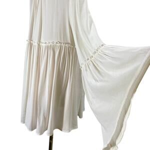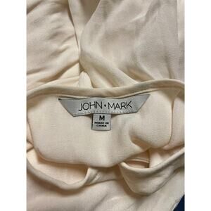 John Mark Tunic Top Womens Medium Cream Boho Tunic Keyhole Tie Neck Bell Sleeves