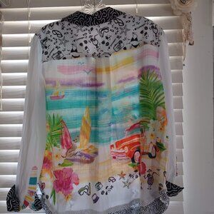 John Mark White/Colorful BEACH DOGS Button-Front Tunic Blouse Size M