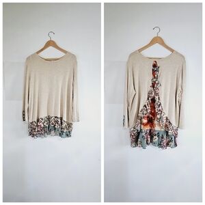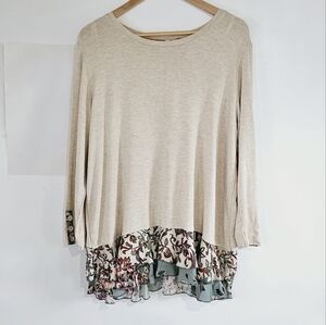 John Mark Women Boho Printed Ruffle Hem Women's Tunic Blouse Size XL