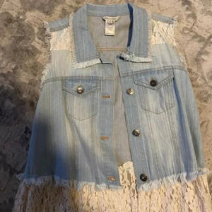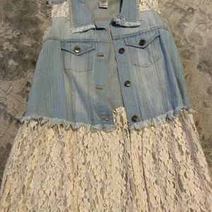John Mark Women's Beautiful Lace Jean Jacket Tunic Size Medium - Blue (P1)