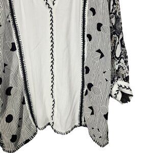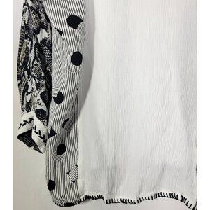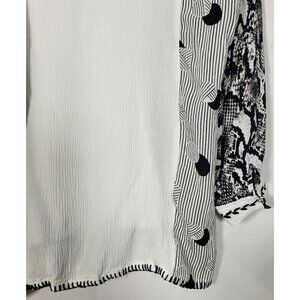 John Mark Women's Embroidered Black & White Crinkle Textured Blouse Size S