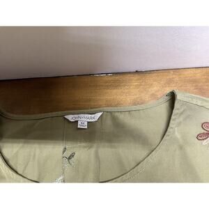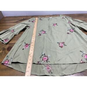 John Mark Women's M Olive Green Floral Embroidered Tunic Top 3/4 Bell Sleeve