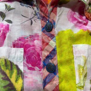 This vibrant floral shirt with plaid accents combines style and comfort. Ideal for casual outings, it features a flattering fit and breathable materials.