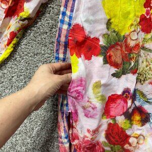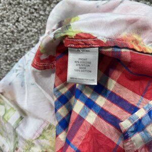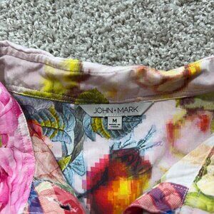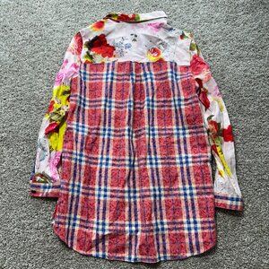 John Mark Womens Medium Floral Button-Up Shirt With Plaid Accents