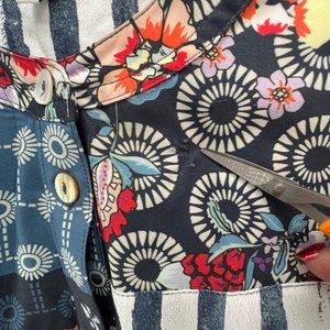 John Mark Womens Mixed Print Boxy Blouse Size XL Blue Red Patchwork Button Down