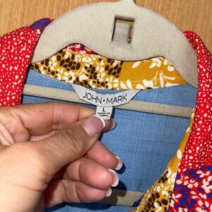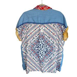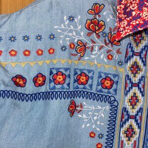 John Mark Womens Shirt Size Large Blue Embroidered Eyelet Floral Short Sleeve