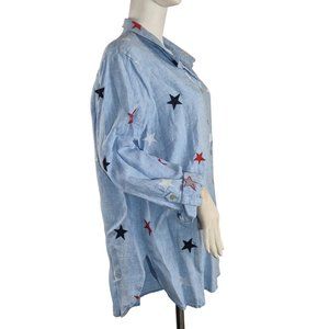 John Mark Women's Size 2X Linen Shirt Top 4th of July Star Embroidered Blue (42)