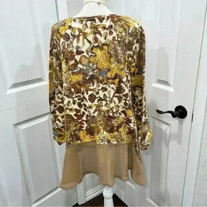 Description: Beautiful Earthy tones make up this high/low hemmed lightweight sweater with button up sleeves.