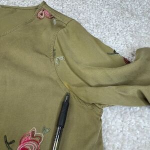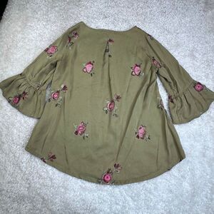 John Mark Olive Green Floral Embroidered Blouse Ruffle Bell Sleeve