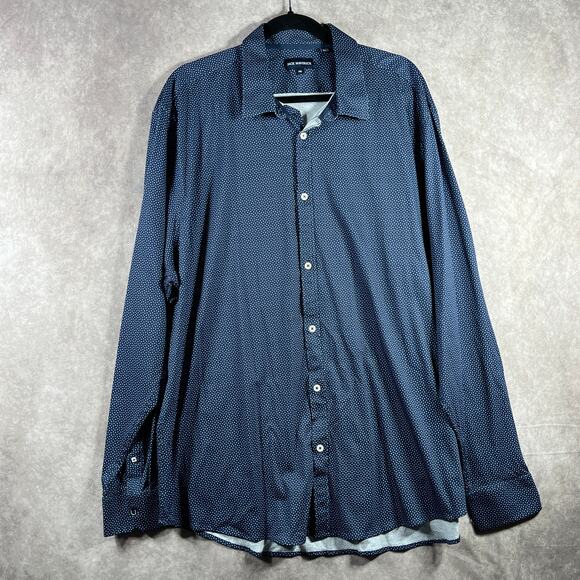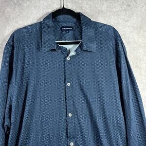 John Maverick Performance Shirt Mens Size 2XL Navy Blue Diamond Print Button Up