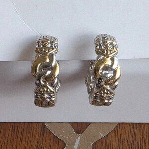 These John Medeiros hoop earrings offer timeless elegance with their intricate two-tone design and secure post closure, suitable for professional or formal attire.