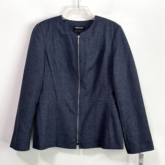 John Meyer Blazer 10 Zip Front Denim Blue Suit Business Career Classic Party NEW