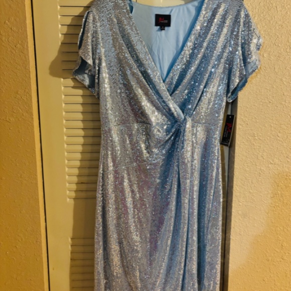 John Meyer JM Studio Blue Dress Sequin Sparkly Party Cocktail Wedding Guest Size 14