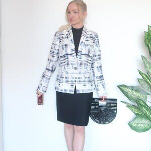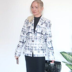 Who said your career / office blazer must be boring!? This beautiful jacket has a unique aquarelle painting like pattern. It's singe breasted with one button closure. Fully lined, subtle shoulder pads. A timeless staple for every life and every wardrobe. The design of this John Meyer blazer does not depend on trends, seasons and fashion cycles so that you can wear it every year in every season. Use it as a key piece for any outfit. As outerwear for mild temperatures or as a layering piece in winter. The casual blazer cut fits every body shape.
