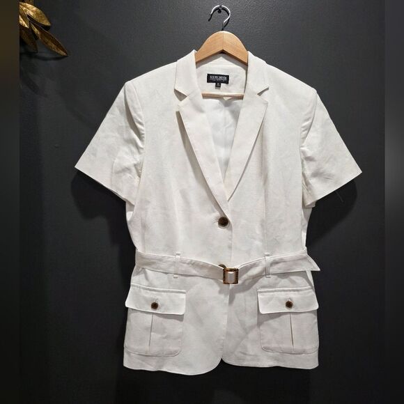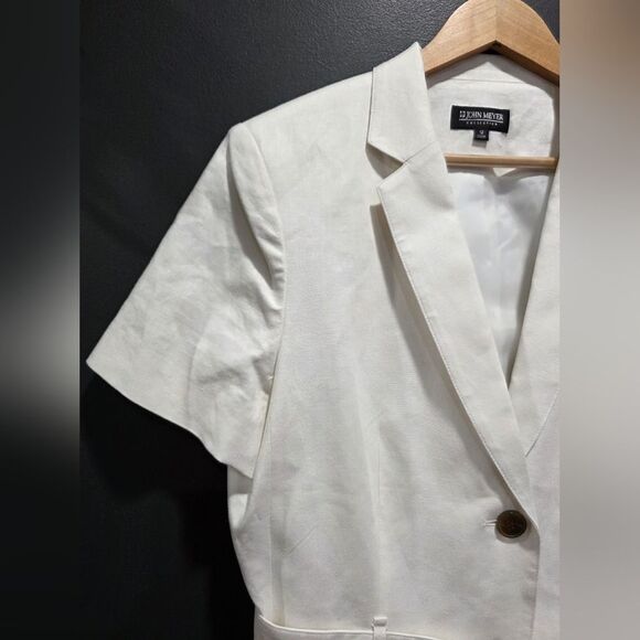 John Meyer Womens White Linen Rayon Short Sleeve Blazer Jacket Size 12 NWOT
