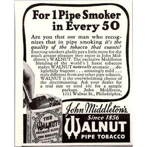 John Middleton Walnut Pipe Tobacco Philadelphia PA 1940s WWII Era Ad SAH7-7