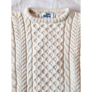 John Molloy VTG Fisherman Cable Knit Ireland Virgin Wool Sweater Adult LG Ivory