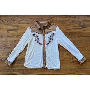John Moon Cream Embroidered Fringe Snap Button Western Shirt Women's Size Large