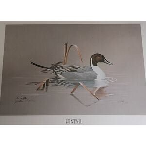 John P Lee 1983 Unframed print Pintail Duck #554/650 Pencil Signed 11⅛ x 10¼
