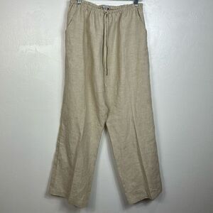 John P Linen Wide Leg High Rise Pants In Light Beige Size XL