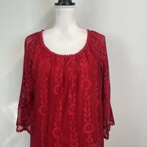 John Paul Richard Blouse Tunic size Medium Red Lace Wedding Church Modest
