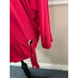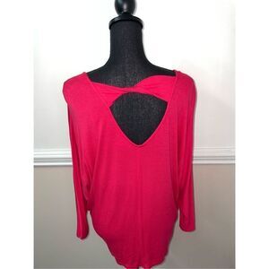 Lightly used. Hot pink colored. Has an open back. Has a tie side. Armpit to armpit laid flat measures about 26.5 inches.
