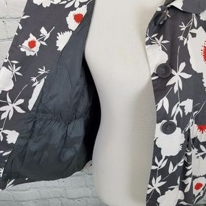 Women's gray, white and orange floral jacket from John Paul Richards. Jacket is in excellent condition, it has a pleated collar, 3/4 sleeves, a button front, and is fully lined. Is free from any flaws and comes from a smoke free home. Size is a large and it measures as follows, laying flat: